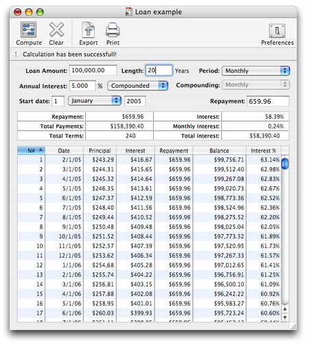 以幫您計算出還款額、月利息和總利息、總還款額,並從起始日起列出一張完整的還款清