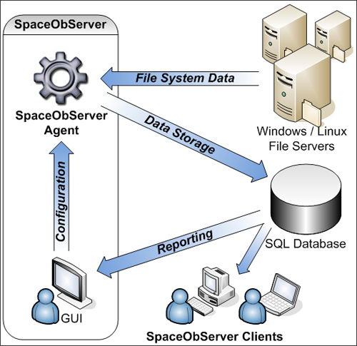 A background service, the SpaceObServer Agent, regularly scans selected