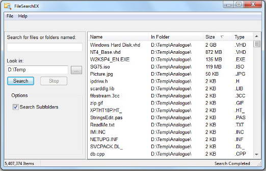 FileSearchEX是一個直接的檔搜索應用程式。它提供了簡化類似的Windows XP的搜索